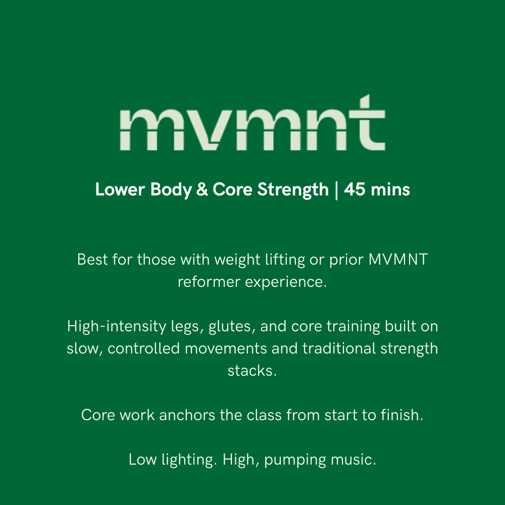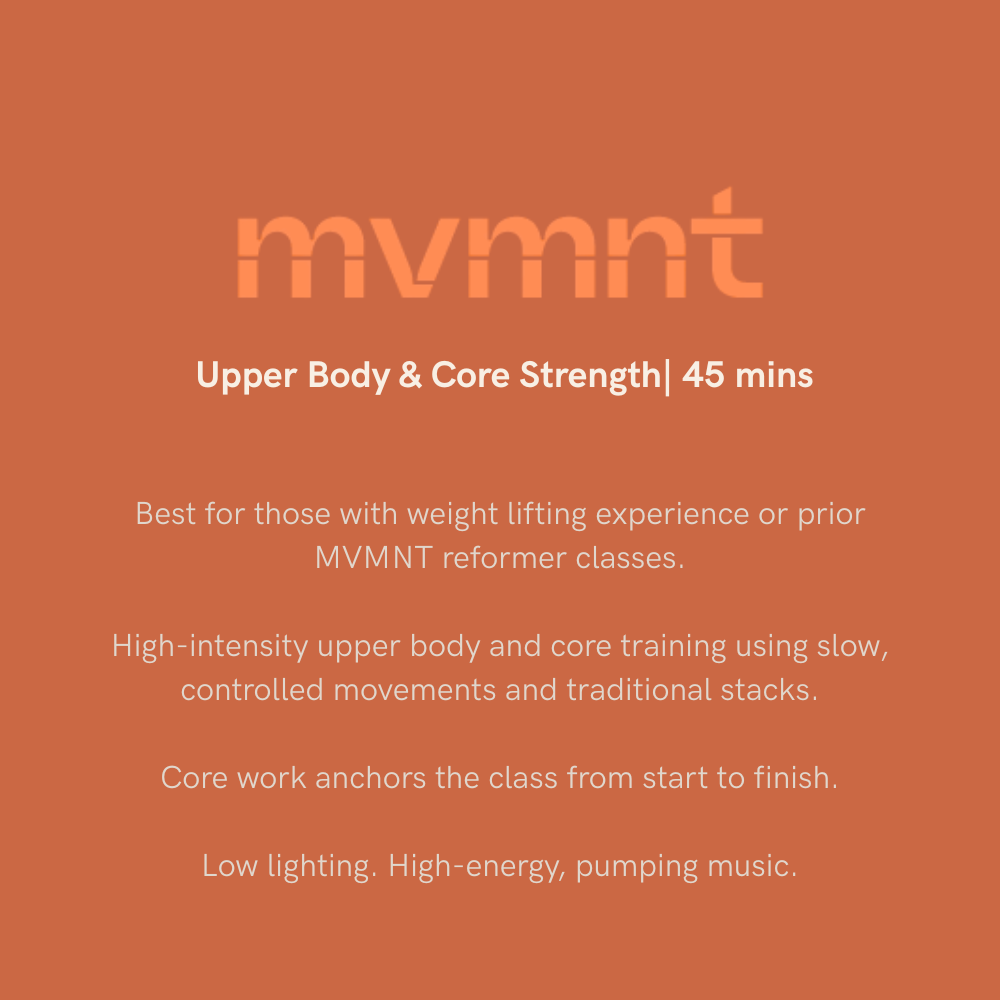 mvmnt blends Pilates precision with strength training intensity in a modern, rhythm-driven environment.