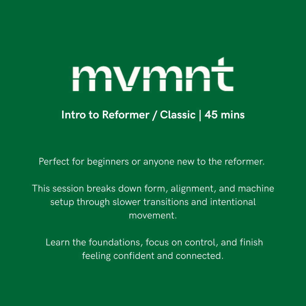 MVMNT IS A MODERN REFORMER STUDIO located inside Soma movement in Bedford, Canada BUILT ON STRENGTH, SCIENCE, AND INTELLIGENT TRAINING. EVERY CLASS IS DESIGNED TO ELEVATE HOW YOU MOVE, FEEL, AND CONNECT — IN BODY AND MIND.